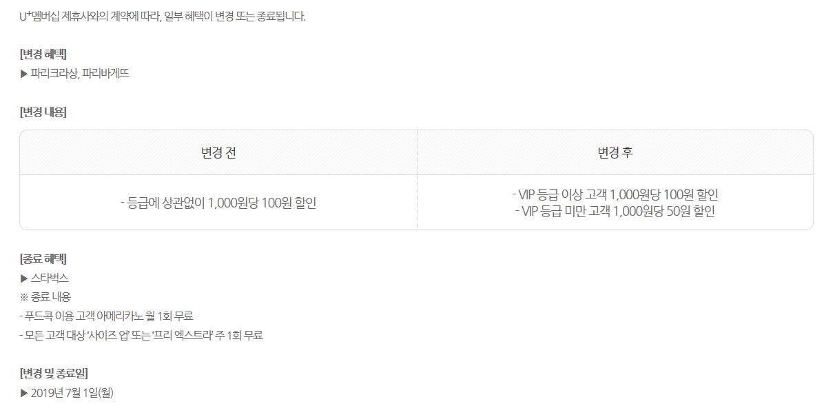유플러스 멤버십 혜택 변경(파리바게뜨) 및 종료(스타벅스) 안내